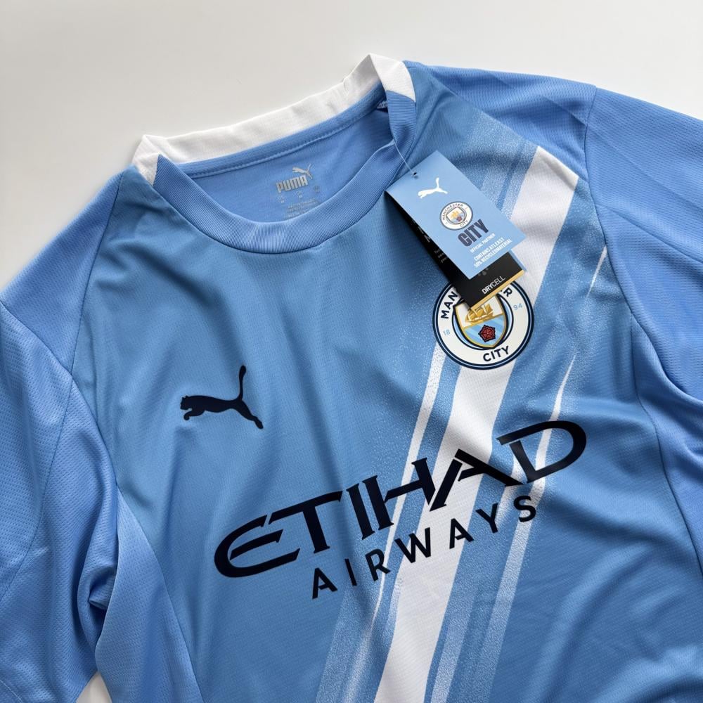 - شعار مطرز: شعار مانشستر سيتي الأيقوني مطرز بدقة ليضفي لمسة من الفخر والانتماء.